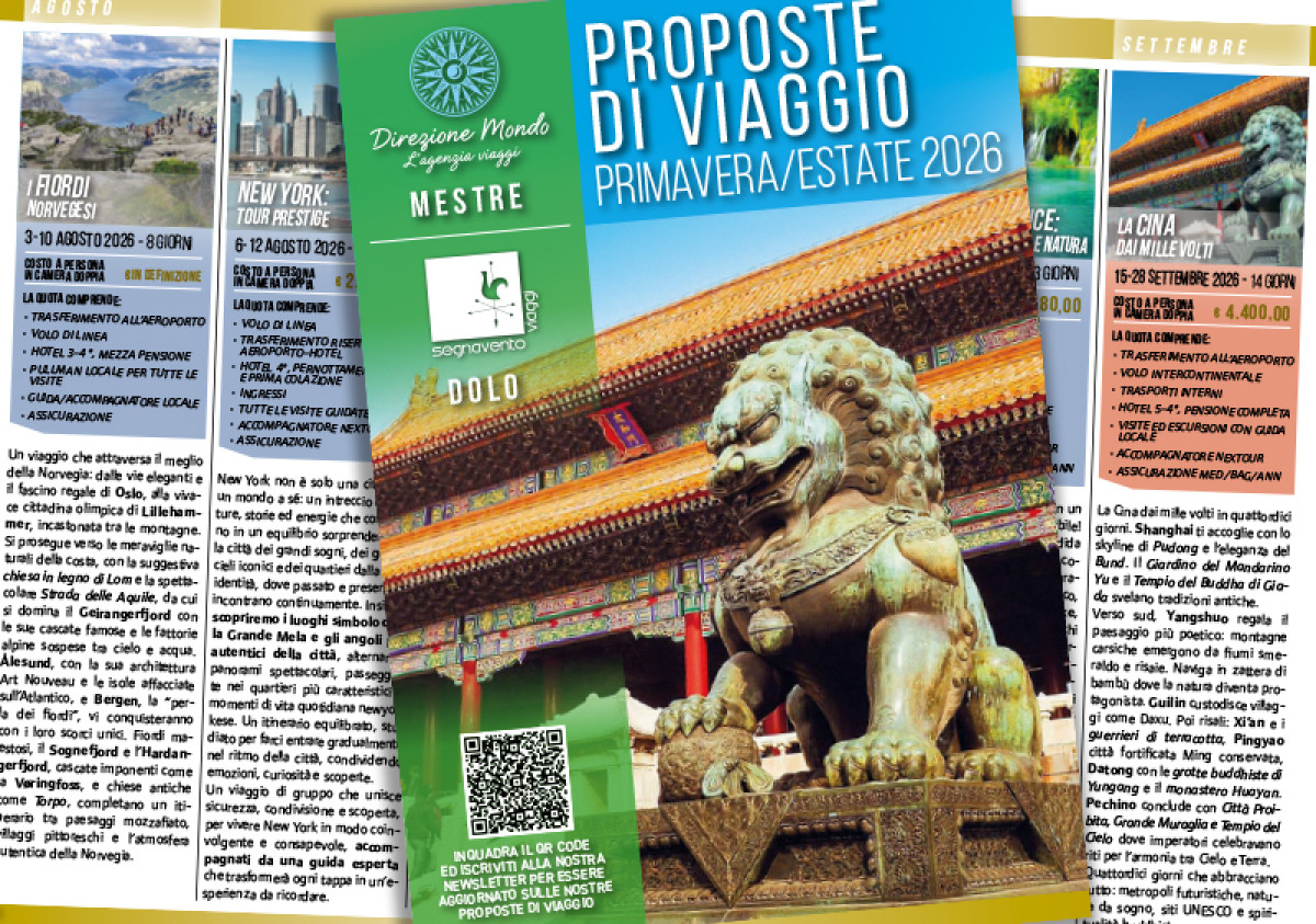 Scarica e sfoglia il nostro primo catalogo Primavera / Estate 2026 dove troverai alcune proposte di viaggio con una ampia gamma di destinazioni per località e prezzi. Questo ti permetterà di avere un promemoria utilanche quando sei off line.